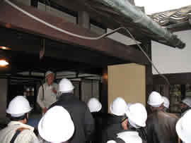 午後からは登録文化財旧玉置家(たまおきけ)住宅の耐震改修現場のセミナーと見学会を行いました。セミナーでは文化財建造物を中心とし、官民一体となったこれからのまちづくりについて、又耐震改修に関する技術的な講演を聴いたあと現場見学に入りました。現場の見学会では耐震補強された(隠ぺい部)が既に仕上げを施され肝心の補強の様子が全く見学できなかったこと、又補強に関する具体的な資料も配付されなかったのが建築の専門家として残念でなりませんでした。