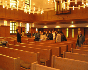 今回の見学会を計画するにあたり、打ち合わせ時間を頂き、又、当日予定時間を過ぎてまでも懇切・丁寧な御説明を頂きました(株)日建設計の児玉様・(株)竹中工務店の山地様に非常に感謝致しております。又、この計画を快く受け入れて下さいました栄光教会の相浦牧師様、また、パイプオルガンを突然にも係らず弾いて下さいました奥様、そして、御関係者の皆様方に厚く御礼申し上げます。 |